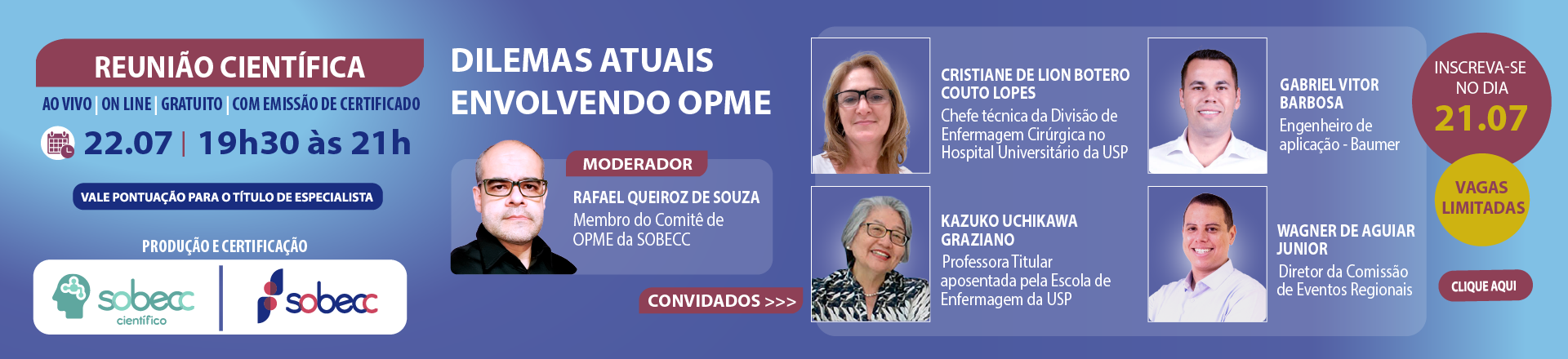 O certificado será disponibilizado em até sete dias, no site da SOBECC, após a validação da participação do inscrito.