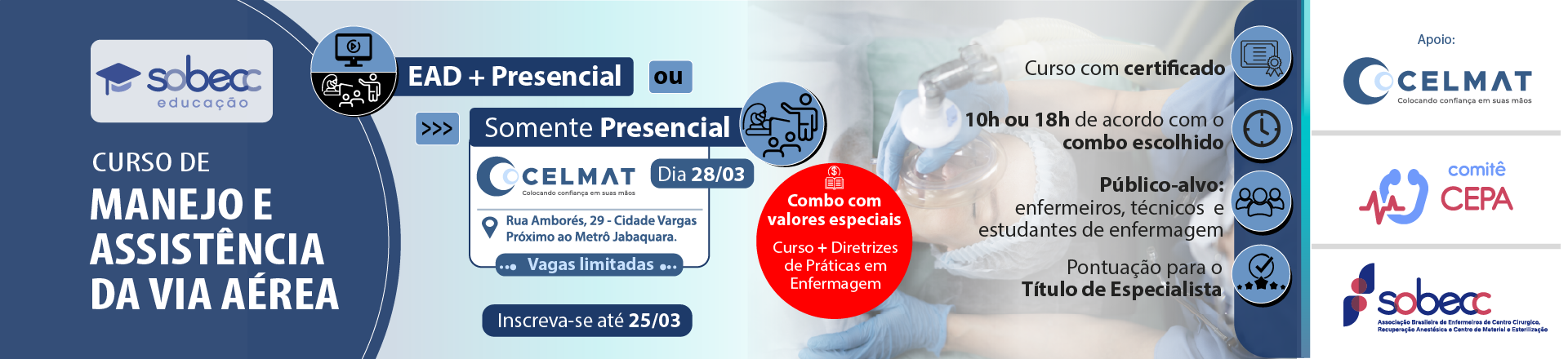 Manejo e assistência da via aérea - Somente Presencial ou EAD + Presencial