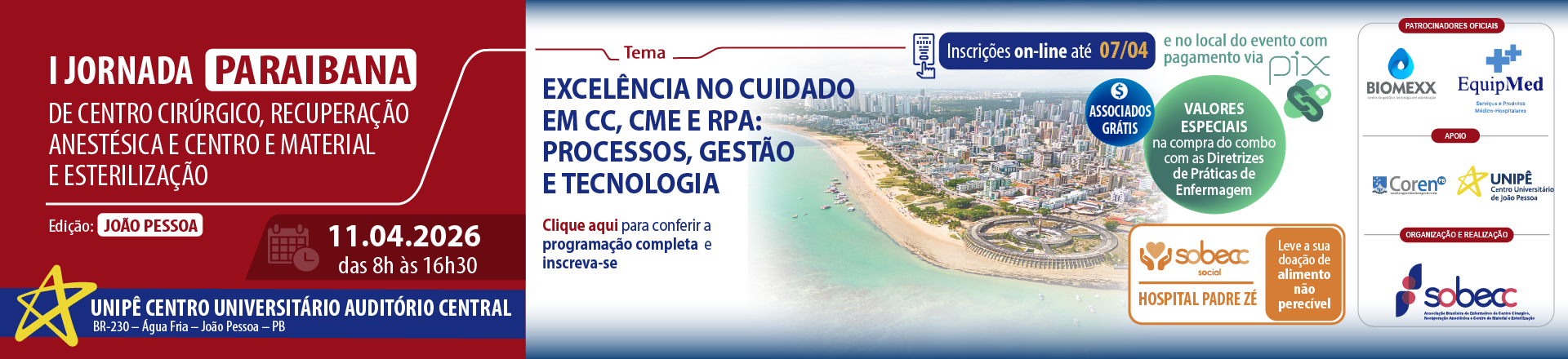 I Jornada Paraibana de Centro Cirúrgico, Recuperação Anestésica e Centro e Material e Esterilização - Edição João Pessoa