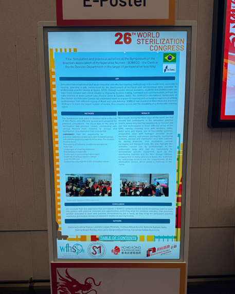 Outro destaque foi a apresentação de trabalho da SOBECC, com a exposição de um pôster intitulado “Atividades de simulação e práticas no Simpósio da SOBECC”. A participação reforçou mais uma vez a relevância do Brasil no contexto internacional, demonstrando que o país segue alinhado às tendências globais em CME e processos de esterilização.